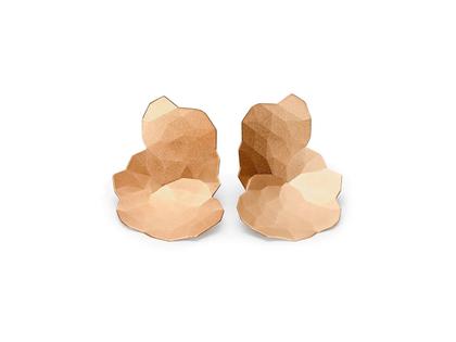 Ohrstecker, flächiges Schmuckelement, 750/- Rotgold (Classic Red), ca. 33 mm lang, handgeschmiedet, dreidimensional gewellt, Oberfläche Velvet (feinmatt)