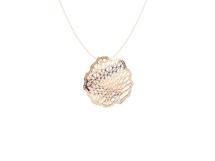 Anhänger aus 750/- Rotgold in der Farbe Classic Red, poliert, Muster aus feinen Dreiecken, mit 94 Brillanten zusammen 0,282 ct TW (G) vsi2, Durchmesser 35,0 mm - Anhänger ohne Halskette