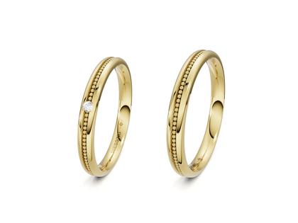 Niessing Trauringpaar Art Déco mittig Gelbgold 2,5mm Gloss