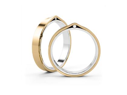 Mein Rückzug, mein sicherer Hafen, mein Schatz - Zwei Bänder aus Gold oder Platin schmiegen sich aneinander. Eine kleine, nach innen gerichtete Aufmerksamkeit, ein geheimer Ort der Besinnung und der Ruhe, den Sie jeden Tag aufsuchen können. In einem kleinen Spalt, der sich öffnet, entdeckt man einen Brillanten, dem Raum und Halt geben wird. In welche Blickrichtung wird der Stein an Ihrem Finger zeigen? Strahlt er nur für Sie – oder zeigt er sich Ihrem Gegenüber? Welche Farben hat Ihre Liebe? Legt sich nach außen warmes Gold, wie eine weiche Decke, schützend über den Diamanten?