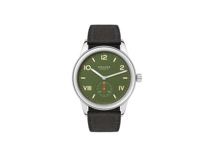 Nomos Glashütte Club Campus All Olive Handaufzug Edelstahl 38mm grünes Zifferblatt schwarzes Lederband Stahlboden