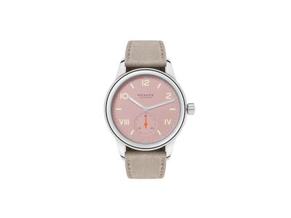 Nomos Glashütte Club Campus Full Rose Handaufzug Edelstahl 36mm rosa Zifferblatt beiges Lederband Stahlboden