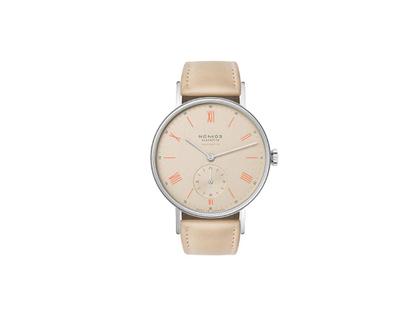 Nomos Glashütte Ludwig neomatik 36 Champagner Automatik Edelstahl beiges Zifferblatt beiges Lederband