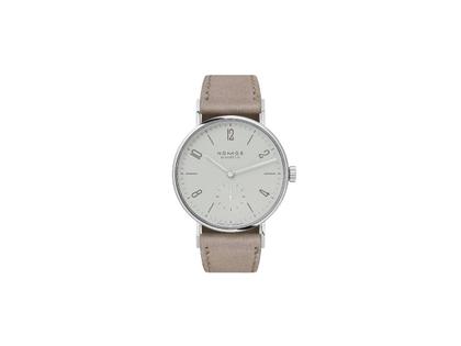 Nomos Glashütte Tangente 33 Handaufzug Edelstahl 33mm graues Zifferblatt beiges Lederband Glasboden