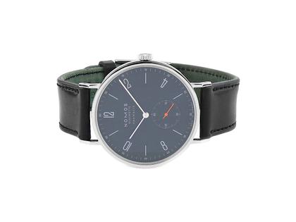 Nomos Tangente 39 neomatik Nachtblau Automatik Edelstahl 39mm blaues Zifferblatt schwarzes Lederband Ref. 142 Full Set Refurbished aus erster Hand