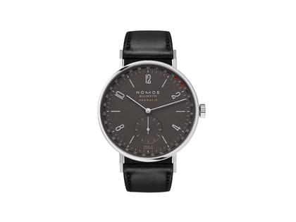 Nomos Glashütte Tangente 41 neomatik Update Ruthenium Automatik Edelstahl 40mm schwarzes Zifferblatt schwarzes Lederband