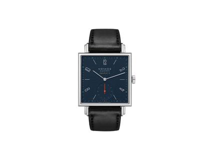 Nomos Glashütte Tetra neomatik 39 Nachtblau Automatik Edelstahl 33mm blaues Zifferblatt schwarzes Lederband