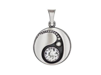 runder Anhänger aus mattiertem 925/- Silber, teilweise geschwärzt im Maß von 32 x 21 mm, mit einem runden Bergkristall