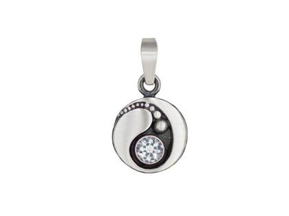 runder Anhänger aus mattiertem 925/- Silber, teilweise geschwärzt im Maß von 19 x 12 mm, mit einem runden Bergkristall