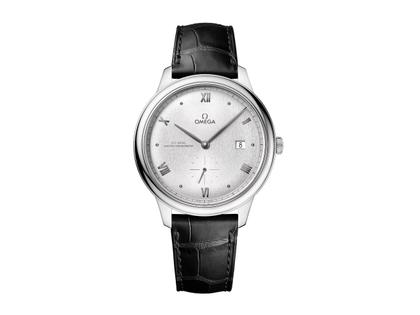 Die OMEGA De Ville Prestige ist seit 1994 eine zeitlose Kollektion. Jetzt erscheint die dritte Generation der Ikone. Mit einer Auswahl an Mustern, Veredelungen und Farben repräsentieren diese Zeitmesser klassisches Design sowie Eleganz und passen sich verschiedensten Lifestyles und Persönlichkeiten an. Dieses 41-mm-Modell aus Edelstahl besitzt ein gewölbtes silbernes Zifferblatt mit Sonnenschliff und einer variierenden vertikalen Prägung. Die Anzeige zeichnet sich durch rhodinierte Zeiger sowie alternierende römische Ziffern und Cabochon-Indizes aus. Der schlichte Look des Zeitmessers wird durch ein Datumsfenster bei 3 Uhr, ein Hilfszifferblatt für die Sekunden bei 6 Uhr und eine äußere „Eisenbahn“-Minuterie ergänzt. Diese als Master Chronometer zertifizierte Uhr wird von einem schwarzen Lederarmband am Handgelenk gehalten und von dem OMEGA Master Co-Axial Kaliber 8802 angetrieben, das durch den kratzfesten Saphirglasboden bewundert werden kann.