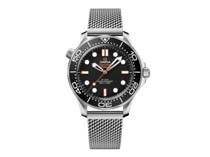 Seit 1993 hat die Seamaster Diver 300M eine begeisterte Anhängerschaft. Für die moderne Kollektion von heute hat OMEGA das berühmte maritime Erbe aufgegriffen und mit innovativsten Ideen und fortschrittlichstem Design bereichert. Das 42-mm-Gehäuse aus Edelstahl verfügt über einen schwarzen, mit Oxalsäure eloxierten Lünettenring aus Aluminium, der eine Tauchskala aus weißer Super-LumiNova aufweist. Schwarzes Aluminium wurde auch für das Zifferblatt verwendet, dessen rhodinierte, skelettierte Zeiger und Indizes ebenfalls mit weißer Super-LumiNova gefüllt sind. Für den zentralen Sekundenzeiger, die vier Viertelstundenindizes und den Namen Seamaster fiel die Wahl auf die Farbe Orange, das OMEGA Logo wurde in Weiß aufgedruckt. Am Handgelenk gehalten wird die Uhr von einem gebürsteten Milanaise-Armband mit Schließe, für den Antrieb sorgt das OMEGA Co-Axial Master Chronometer Kaliber 8806, das durch den Saphirglasboden bewundert werden kann.