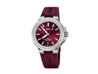 Oris Aquis Date Diamonds Automatik Edelstahl rot Kautschukband
