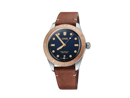 Oris Divers Sixty-Five Automatik Edelstahl 40mm blaues Zifferblatt braunes Lederband