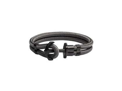 Herrenarmband aus dunkelgrauem Nylon, zweireihig, Anker als Hakenverschluss aus Edelstahl Schwarz-IP beschichtet, Länge 18,0 cm