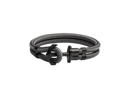 Herrenarmband aus dunkelgrauem Nylon, zweireihig, Anker als Hakenverschluss aus Edelstahl Schwarz-IP beschichtet, Länge 19,0 cm