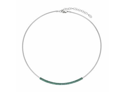 Halsreif aus 925/- Silber rhodiniert und poliert, teilweise mit grünem Emaillestaub in der Farbe "Green Amazzonia" beschichtet, Karabinerverschluss, 42 - 47 cm lang