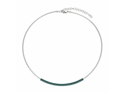 Halsreif aus 925/- Silber rhodiniert und poliert, teilweise mit dunkelgrünem Emaillestaub in der Farbe "Green Black Forest" beschichtet, Karabinerverschluss, 42 - 47 cm lang