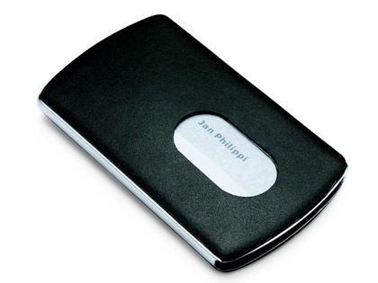 Nic Visitenkartenspender aus poliertem Edelstahl mit schwarzem Leder