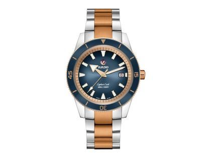 Rado Captain Cook Automatik Edelstahl 42mm roségold beschichtet blau Edelstahlband bicolor