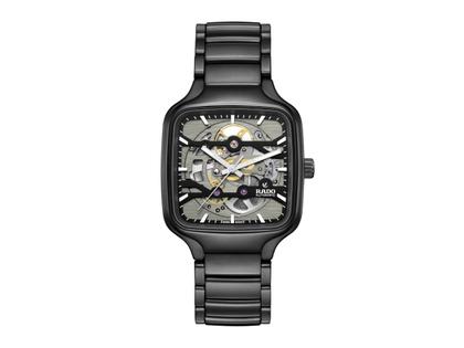 Die neue True Square Skeleton ergänzt die beliebte Rado True Square Kollektion um ein weiteres Highlight. Was bei ihr sofort ins Auge fällt, sind das skelettierte R808 Uhrwerk und das Zifferblatt mit zwei Ebenen, das praktisch mit dem Uhrwerk verschmilzt. Dieses hochmoderne Uhrwerk bietet eine herausragende Präzision, kombiniert mit einer besseren Beständigkeit gegenüber Magnetfeldern und Temperaturschwankungen. Außerdem verfügt die Uhr über eine Gangreserve von 80 Stunden. Mit ihrem 38 mm großen Monobloc-Gehäuse und ihrem Armband aus polierter Hightech-Keramik bietet die True Square Skeleton typische Rado Merkmale in einer faszinierenden Form.