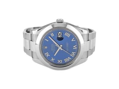 Hier bieten wir Ihnen eine neuwertige Rolex Datejust 41 in der Zifferblattfarbe Blau mit römischen Ziffern. Die Uhr wurde von einem Kunden unseres Hauses im März 2013 bei einem offiziellen Konzessionär gekauft und ungetragen und neuwertig in Zahlung gegeben. Die Uhr wurde im Mai 2025 bei Rolex komplett überholt und mit einem neuen Uhrwerk versehen. Seitdem ist sie ungetragen und hat demnach auch noch bis Mai 2027 Herstellergarantie. Zudem gewähren wir 1 Jahr Garantie ab Kaufdatum.