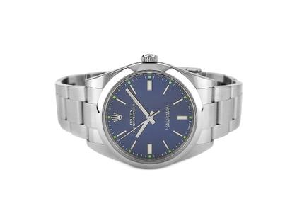 Mit Freude bieten wir Ihnen hier eine neuwertige Rolex Oyster Perpetual in der seltenen Ausführung mit dem stahlblauen Zifferblatt und den dezenten grünen Leuchtindizes. Die Uhr wurde von einem Kunden unseres Hauses im September 2019 bei einem deutschen Konzessionär gekauft und nun wieder wenig getragen und nahezu neuwertig in Zahlung gegeben. Wir bieten Ihnen somit eine besondere Uhr an und gewähren zudem 1 Jahr Garantie ab Kaufdatum.