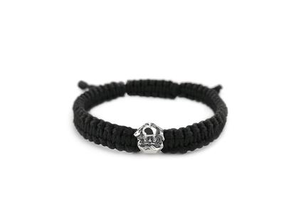 Makramee-Armband aus schwarzer Schnur, 9,0 mm breit, mit "Nischel"-Bead aus 925/- Silber oxidiert, verstellbar bis maximal 75 mm Innen-Durchmesser