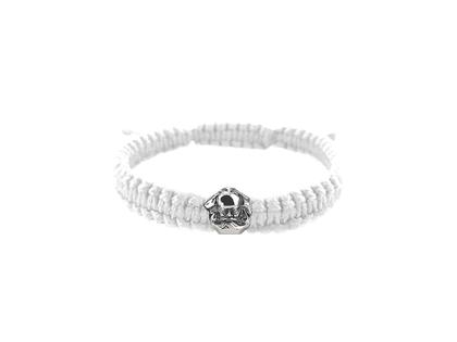 Makramee-Armband aus weißer Schnur, 9,0 mm breit, mit "Nischel"-Bead aus 925/- Silber oxidiert, verstellbar bis maximal 75 mm Innen-Durchmesser