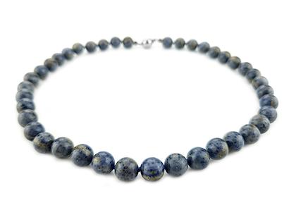 Schmucksteinkette aus blauen Picasso-Jaspis-Kugeln mit 10,0 mm Durchmesser, Steckverschluss aus 925/- Silber poliert, 45 cm lang