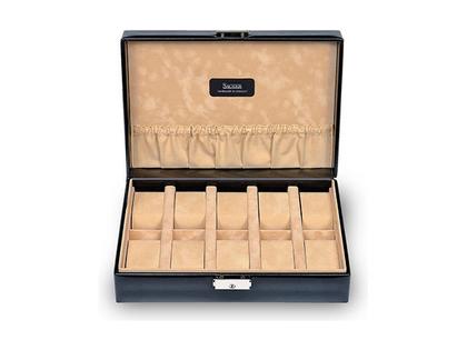 Sacher Uhrenetui für 10 Uhren italienisches Leder schwarz beige