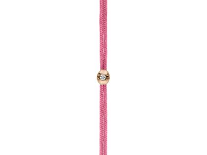 lässiger Armschmuck, Mittelteil aus 750/- Roségold, mit Brillant 0,015 ct TW (G) vsi, rosa Textilband (Candy Pink), Größe M (20 cm lang im geöffneten Zustand)