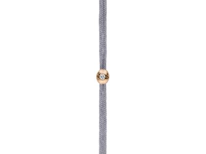 lässiger Armschmuck, Mittelteil aus 750/- Roségold, mit Brillant 0,015 ct TW (G) vsi, graues Textilband (Shadow Grey), Größe M (20 cm lang im geöffneten Zustand)