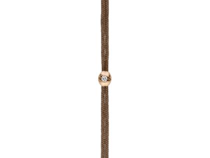 lässiger Armschmuck, Mittelteil aus 750/- Roségold, mit Brillant 0,015 ct TW (G) vsi, beiges Textilband (Cashmere), Größe M (20 cm lang im geöffneten Zustand)