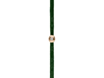 lässiger Armschmuck, Mittelteil aus 750/- Roségold, mit Brillant 0,015 ct TW (G) vsi, grünes Textilband (Emerald Green), Größe M (20 cm lang im geöffneten Zustand)