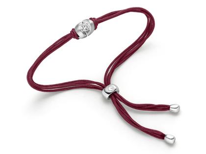 lässiger Armschmuck, Mittelteil aus 750/- Weißgold, mit Brillant 0,18 ct TW (G) vsi, weinrotes Textilband (Dark Burgundy), Größe M (20 cm lang im geöffneten Zustand)