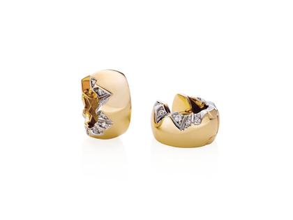 Creolen aus 750/- Gelbgold poliert, mit 20 Brillanten zusammen 0,130 ct TW vsi, Klappverschluss, 5,0 mm