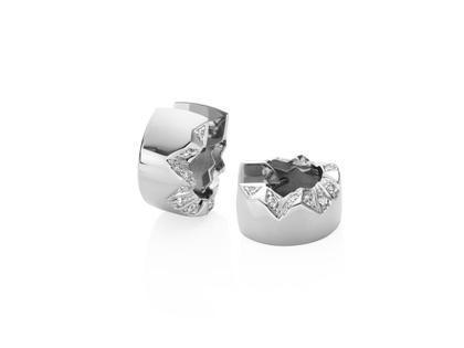 Creolen aus 750/- Weißgold poliert, mit 22 Brillanten zusammen 0,140 ct TW vsi, Klappverschluss, 7,0 mm breit