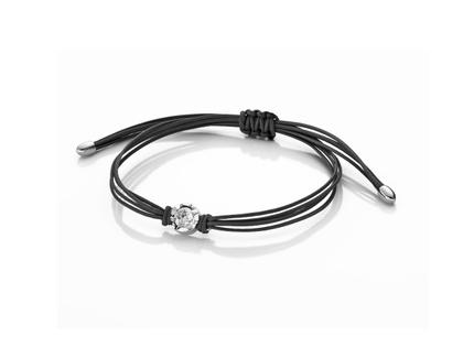 Makramee-Armband aus einem schwarzen Textilband, Anhänger aus 750/- Weißgold mit einem Durchmesser von 7,0 mm, mit 1 Brillant 0,400 ct TW vsi, verstellbar, 16 cm lang