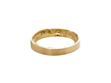 Ring aus 750/- Gelbgold mattiert, eckige Ringschiene mit "Alpenrelief", 5,0 mm breit, 2,0 mm hoch