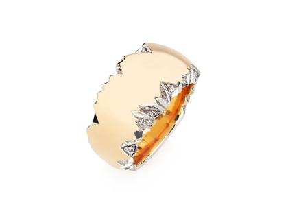 Ring aus 750/- Rotgold, Verlauf gewölbt, Ringschiene mit "Alpenrelief", mit 50 Brillanten zusammen 0,360 ct TW vsi, 13,0 mm breit