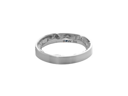 Ring aus 750/- Weißgold mattiert, eckige Ringschiene mit "Alpenrelief", 5,0 mm breit, 2,0 mm hoch