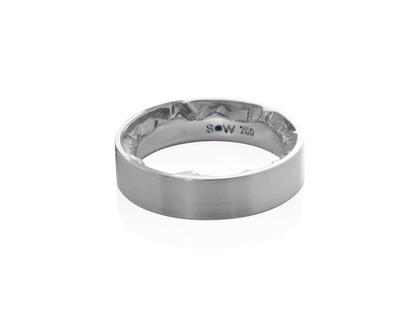 Ring aus 750/- Weißgold mattiert, eckige Ringschiene mit "Alpenrelief", 6,0 mm breit, 2,3 mm hoch, Weite 59 - 63 - andere Ringweiten auf Anfrage