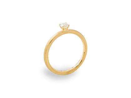 Solitaire-Ring aus 750/- Gelbgold poliert, gerundete Ringschiene, mit 1 Brillant 0,100 ct TW vsi, 1,5 mm breit, 1,8 mm hoch