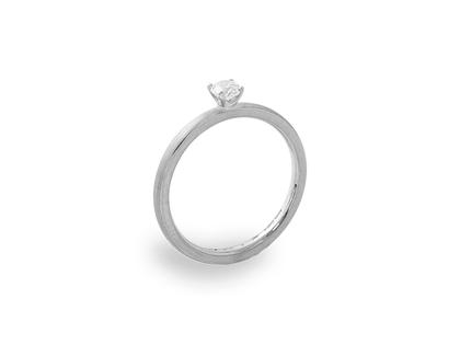 Solitaire-Ring aus 750/- Weißgold poliert, gerundete Ringschiene, mit 1 Brillant 0,100 ct TW vsi, 1,5 mm breit, 1,8 mm hoch