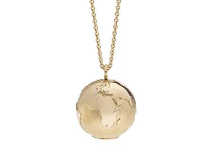 funkelndes Reiseandenken, Anhänger Weltkugel, 750/- Gelbgold, Durchmesser 19 mm, mit einem Brillant 0,0025 ct TW vsi, Ankerkette 90 cm lang