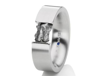 Spannring Edelstahl eckig, mattiert 7mm breit mit Meteorit