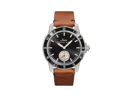 Sinn Spezialuhren 104 Klassik 12 Automatik Edelstahl 41mm schwarzes Zifferblatt braunes Lederband