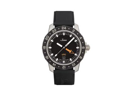 Sinn Spezialuhren 105 St Sa UTC Automatik Edelstahl 41mm schwarzes Zifferblatt schwarzes Silikonband
