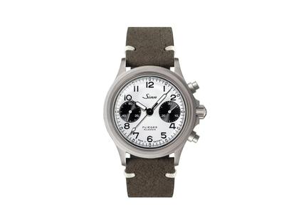 Sinn Spezialuhren 356 FLIEGER Klassik W Chronograph Automatik Edelstahl 38,5mm weißes Zifferblatt graues Lederband