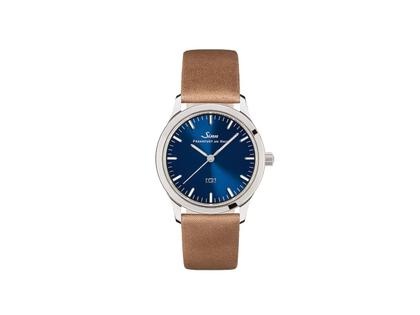 Sinn Spezialuhren 434 St B Quarz Edelstahl 34mm blaues Zifferblatt braunes Lederband